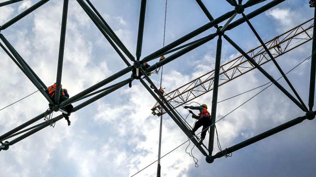 【新華社南寧12月30日】中国広西チワン族自治区南寧と広東省珠海の間で建設が進む南珠高速鉄道の玉林北-岑溪東区間では、資格を持つ鉄骨組立工らが屋根部分や二次構造の施工に従事している。火花が飛び散る作業場で、複雑な形状の接合部をミリ単位の精度で加工し、溶接、切断、組み立てを行う。鉄骨組立工は人力資源・社会保障部が発表した17の新職業の一つで、確かな技術が高速鉄道建設の質の高い発展を支えている。