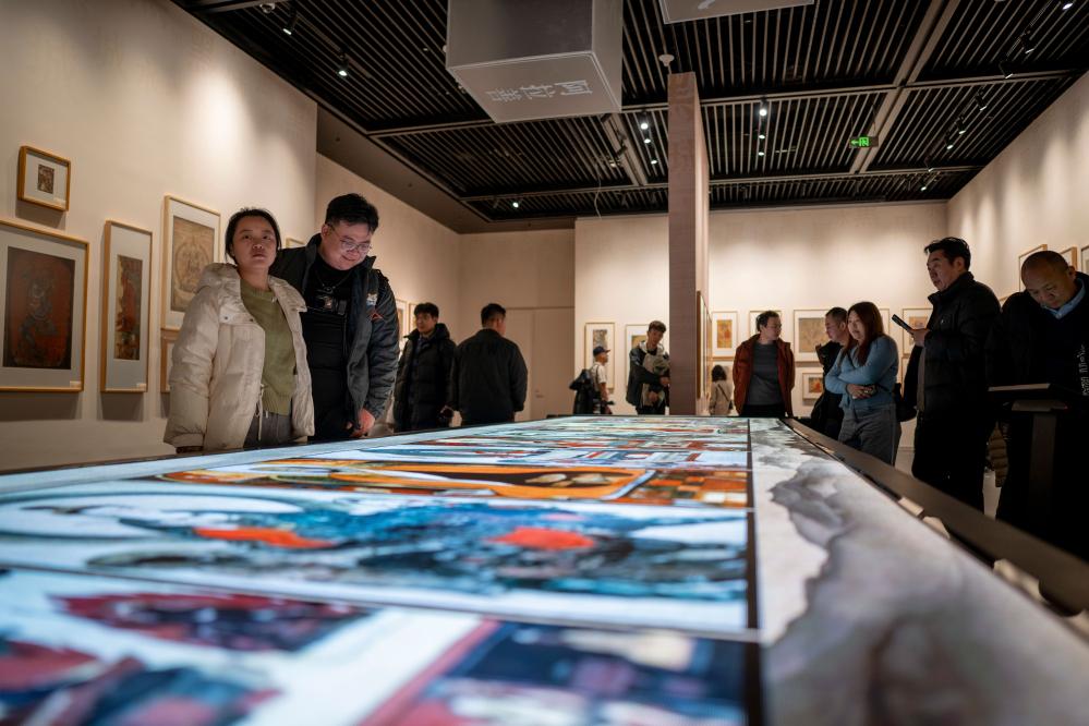 28日、「黒水城遺珍-ロシア蔵黒水城出土絵画特別展」を見学する来場者。(フフホト=新華社記者/連振)