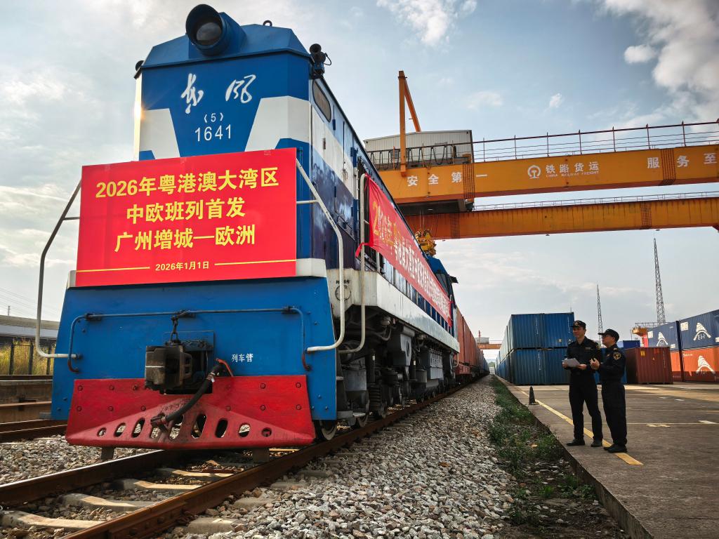 【新華社広州1月6日】中国の粤港澳大湾区(広東・香港・マカオグレーターベイエリア)で2026年最初の「中欧班列」(中国-欧州間の国際貨物列車)が1日、広東省広州東部道路鉄道複合輸送ハブの増城西駅を出発した。新疆ウイグル自治区のコルガス通関地から出国し、約14日後にポーランド・マワシェビチェに到着する。