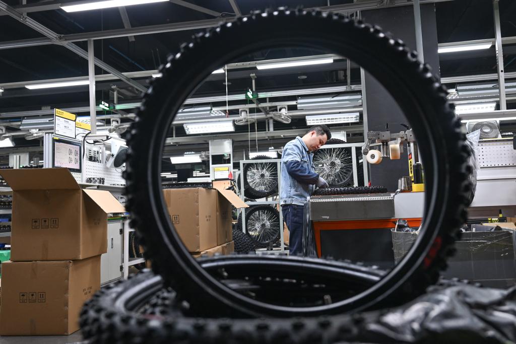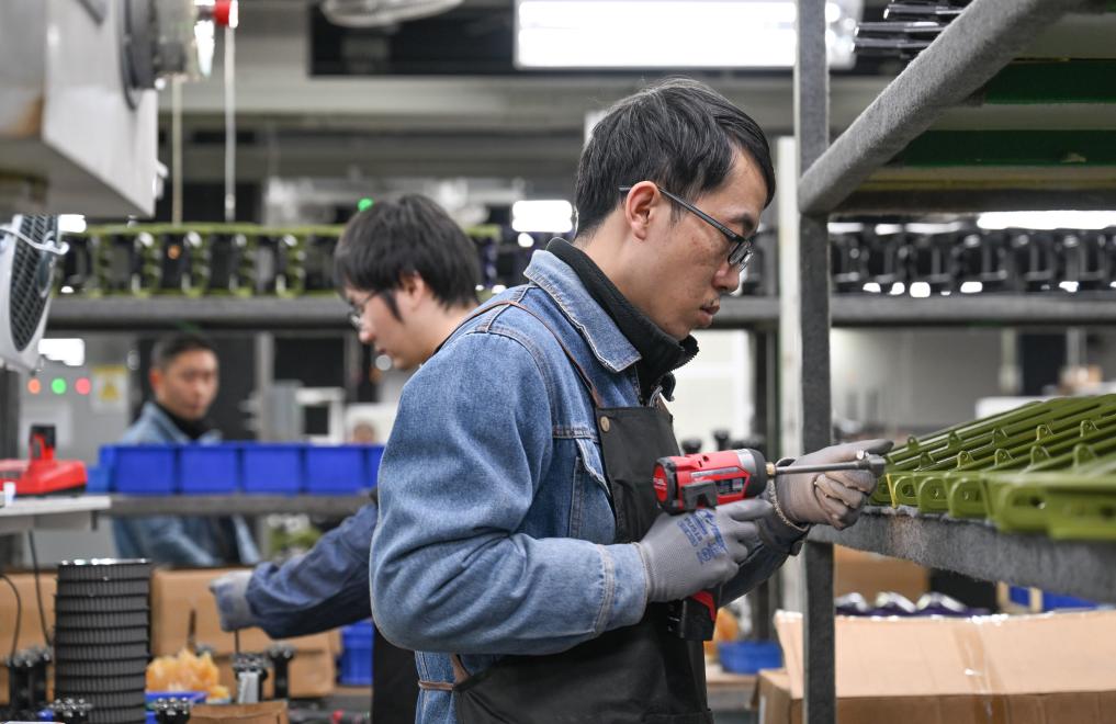 12月24日、虬竜科技の工場で新エネバイクの部品を準備する従業員。(重慶=新華社記者/陳誠)