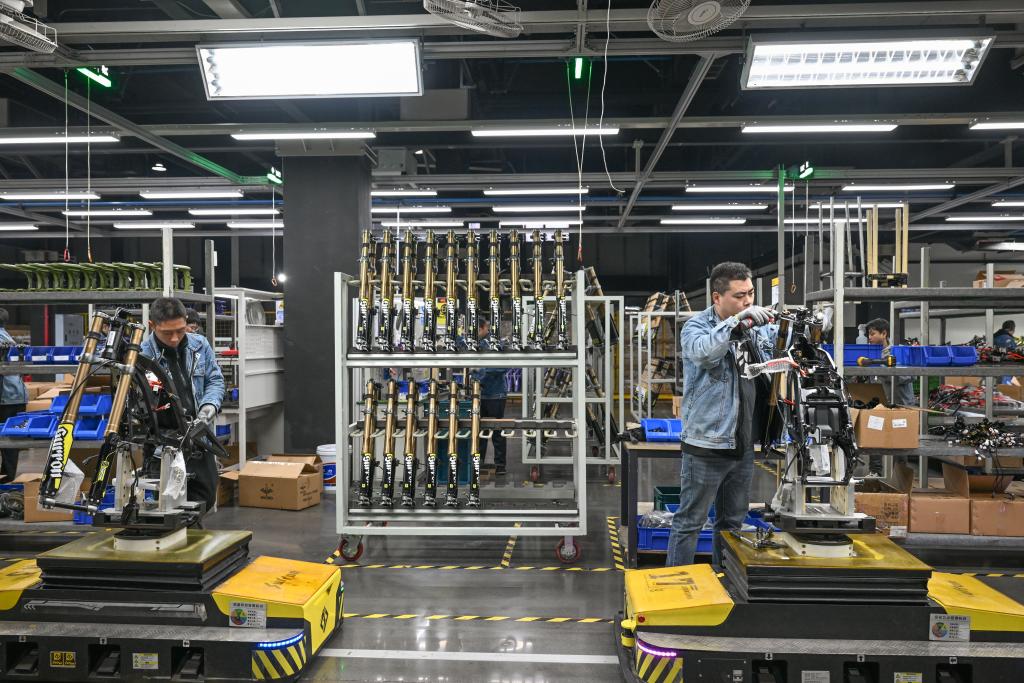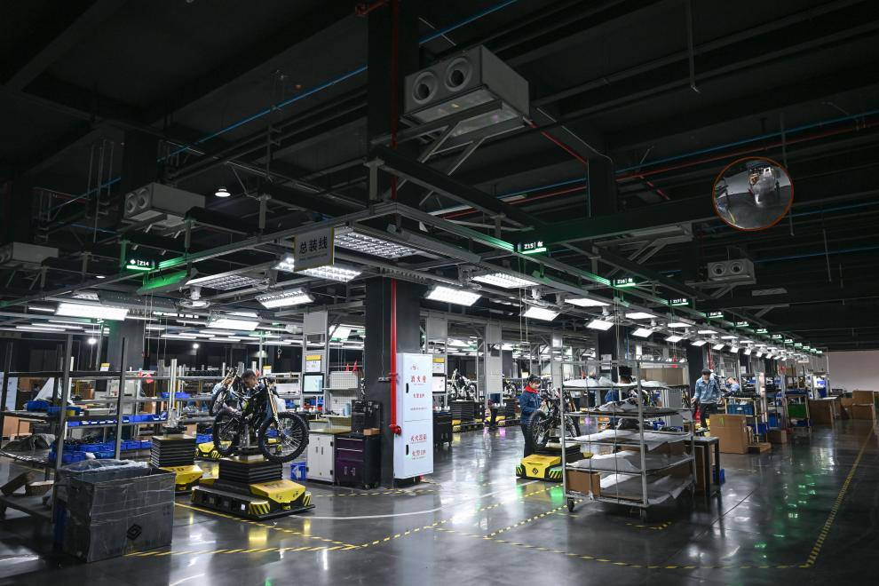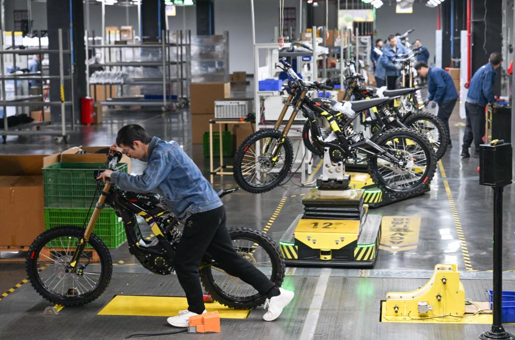 12月24日、新エネバイクの組み立てが行われている虬竜科技の工場。(重慶=新華社記者/陳誠)
