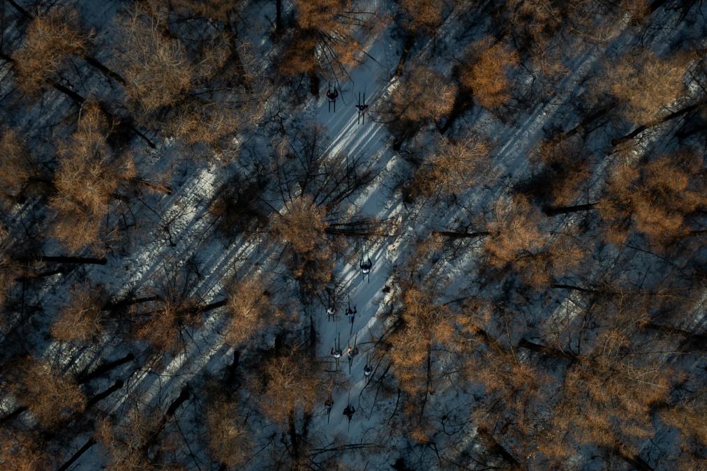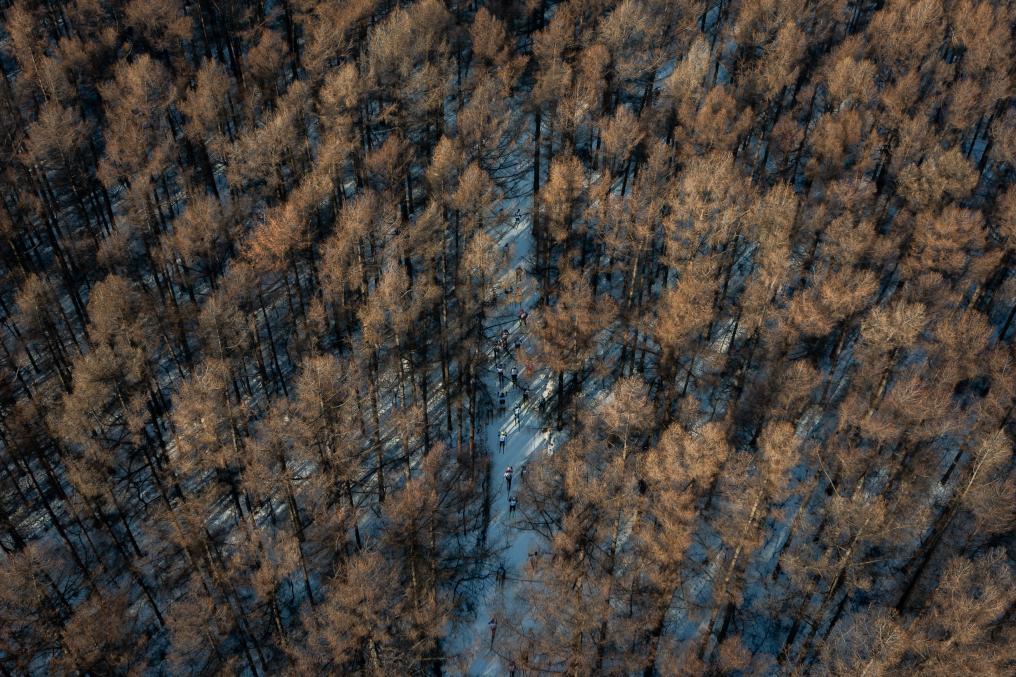 4日、バーサーロペット・チャイナの会場で競技に参加する選手たち。(ドローンから、長春=新華社記者/許暢)