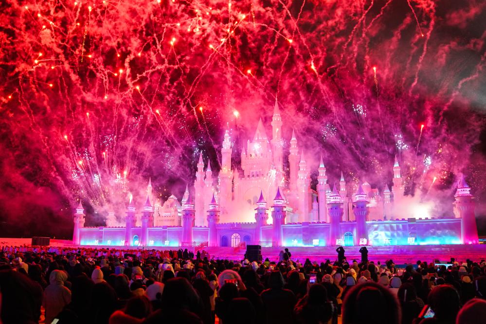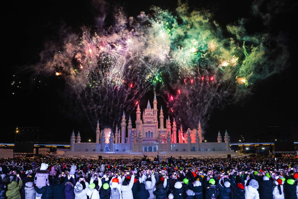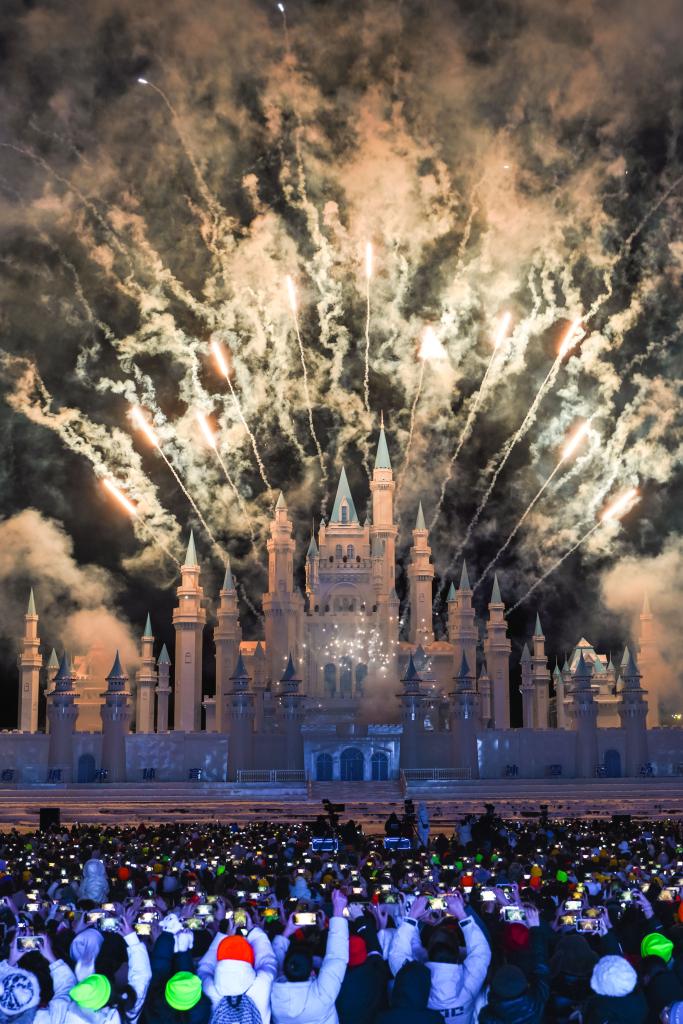 6日、始動式の会場で花火ショーを楽しむ市民。(長春=新華社記者/許暢)
