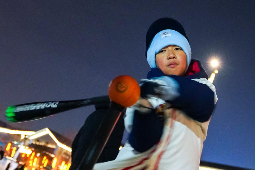 6日、始動式の会場で雪上ソフトボールを楽しむ市民。(長春=新華社記者/許暢)