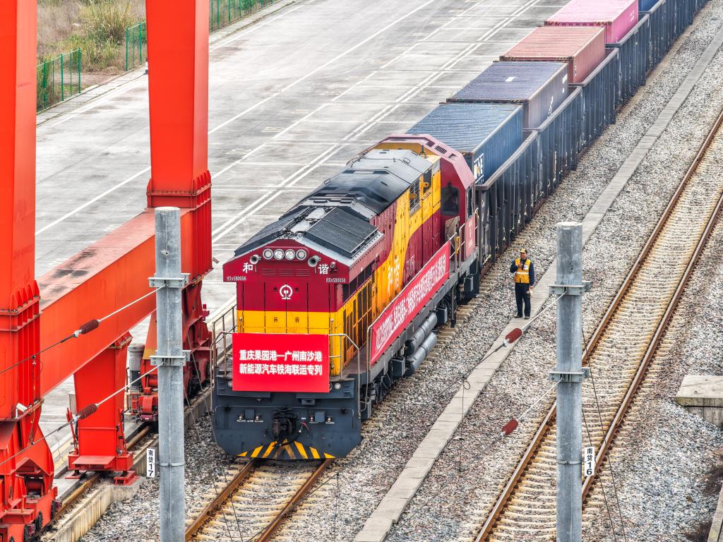 同列車は、今年初めて運行される重慶製新エネ車鉄道・海上複合一貫輸送専用列車で、これにより「重慶製自動車の海外進出」を支える国際物流体系構築が加速し、重慶製新エネ車の国際競争力がさらに向上する。