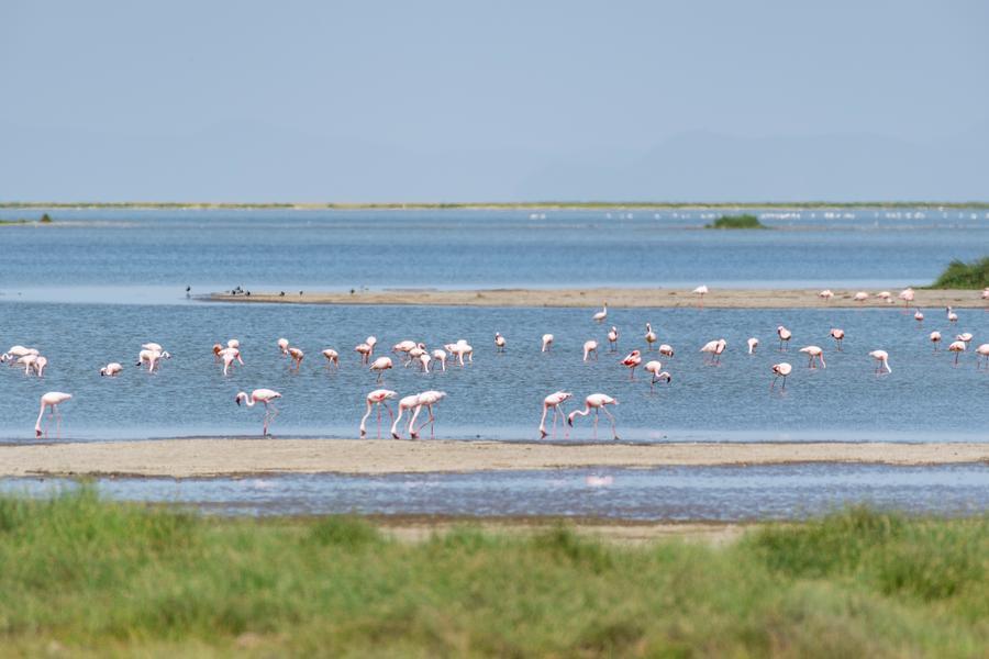 8日、ケニアのアンボセリ国立公園に生息するフラミンゴ。(ナイロビ=新華社記者/鄭夢雨)