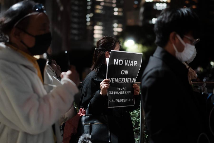 【新華社東京1月10日】東京の首相官邸前で9日夜、市民グループが集会を開き、高市早苗首相が米国のベネズエラ軍事攻撃について態度表明を回避したことや、日本政府の最近の危険な軍事動向に対し、抗議した。(記者/楊智翔、李子越)
