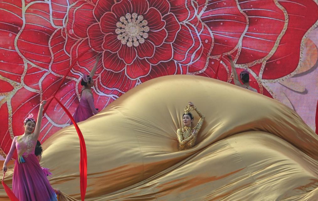 9日、第23回「ロウバイまつり」の開幕式で行われたパフォーマンス。(重慶=新華社記者/陳誠)