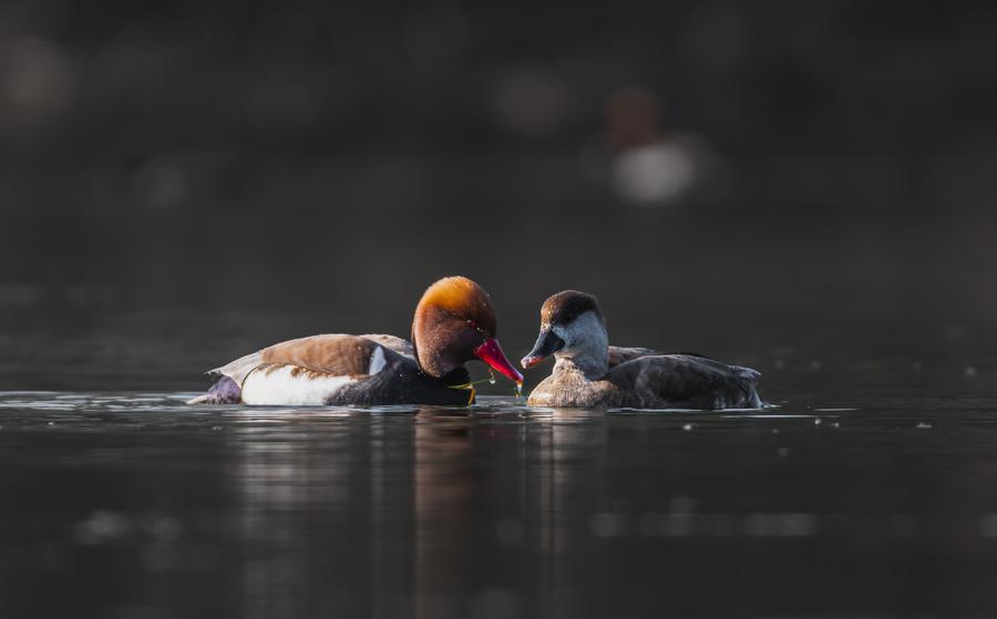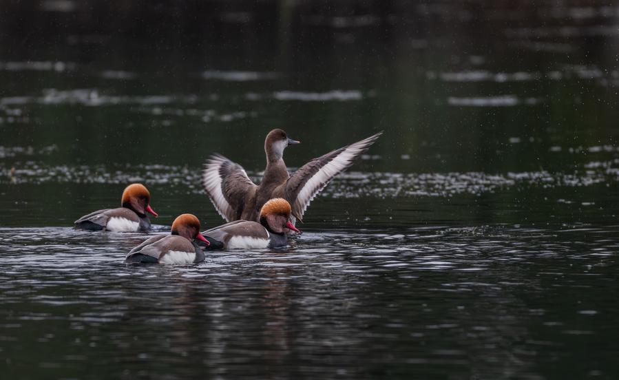 3日、野鳥愛好家が成都で撮影したアカハシハジロ。(成都=新華社配信/馮昆)
