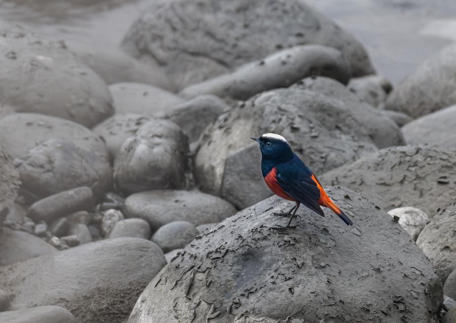 2日、野鳥愛好家が成都で撮影したシロボウシカワビタキ。(成都=新華社配信/馮昆)