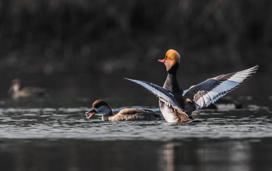 8日、野鳥愛好家が成都で撮影したアカハシハジロ。(成都=新華社配信/馮昆)