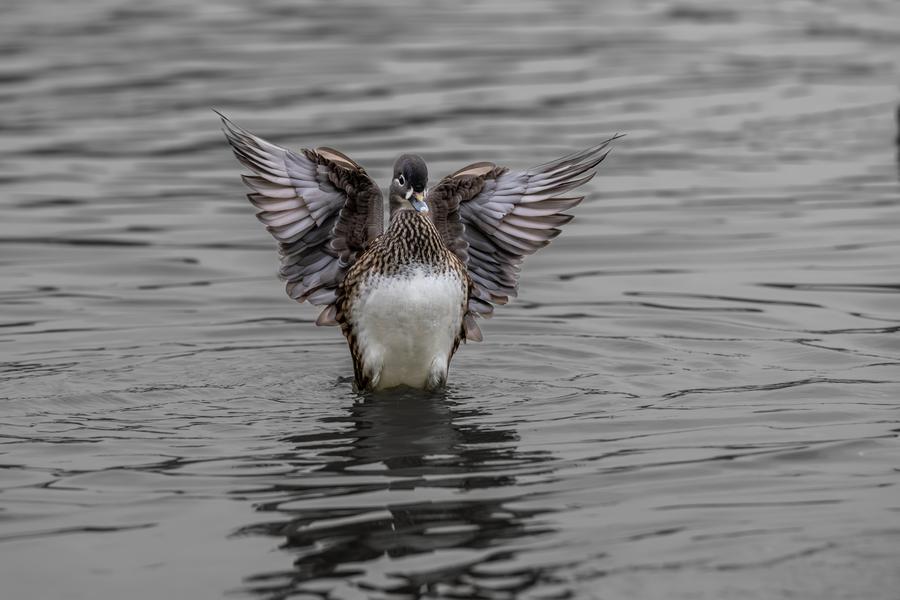2日、野鳥愛好家が成都で撮影したオシドリ。(成都=新華社配信/馮昆)