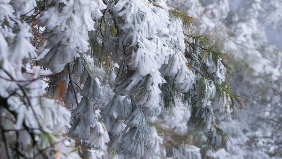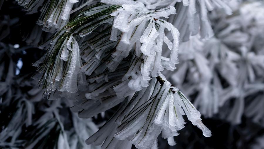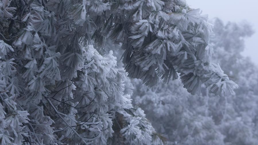 7日、梁王山に出現した霧氷。(澄江=新華社配信/謝羅凱)