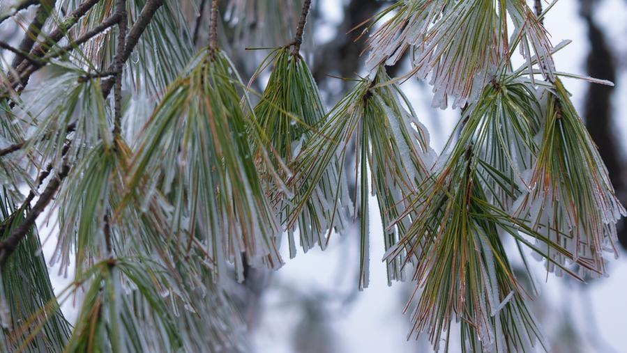 7日、氷をまとったマツやヒノキ。(澄江=新華社配信/謝羅凱)