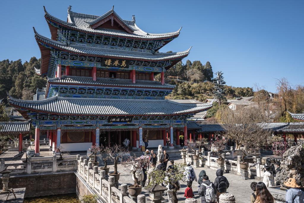 13日、麗江古城の観光スポット「木府」を訪れる観光客。(麗江=新華社記者/王冠森)