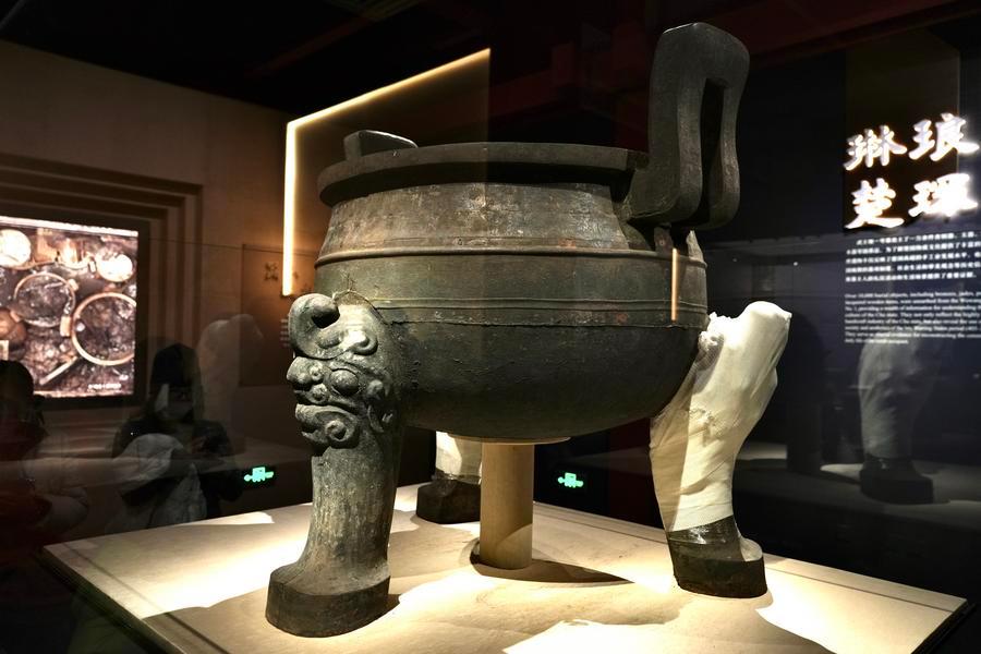 戦国時代・楚国の墓「武王墩1号墓」出土の文化財から200点余りを選び、発掘調査の科学的プロセスや考烈王陵墓の礼制、楚国の物質文明、戦国時代の文化融合を体系的に展示している。会期は4月まで。