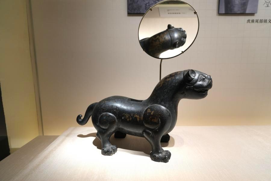 14日、「安徽淮南武王墩1号墓考古成果展」で展示された青銅鑑。(北京=新華社記者/許芸潁)