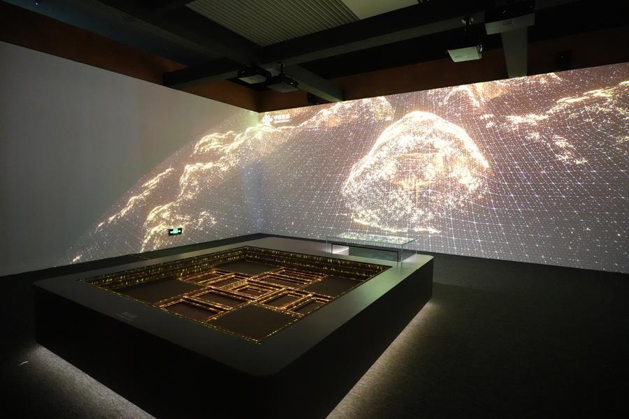 14日、「安徽淮南武王墩1号墓考古成果展」の展示ホール。(北京=新華社記者/許芸潁)