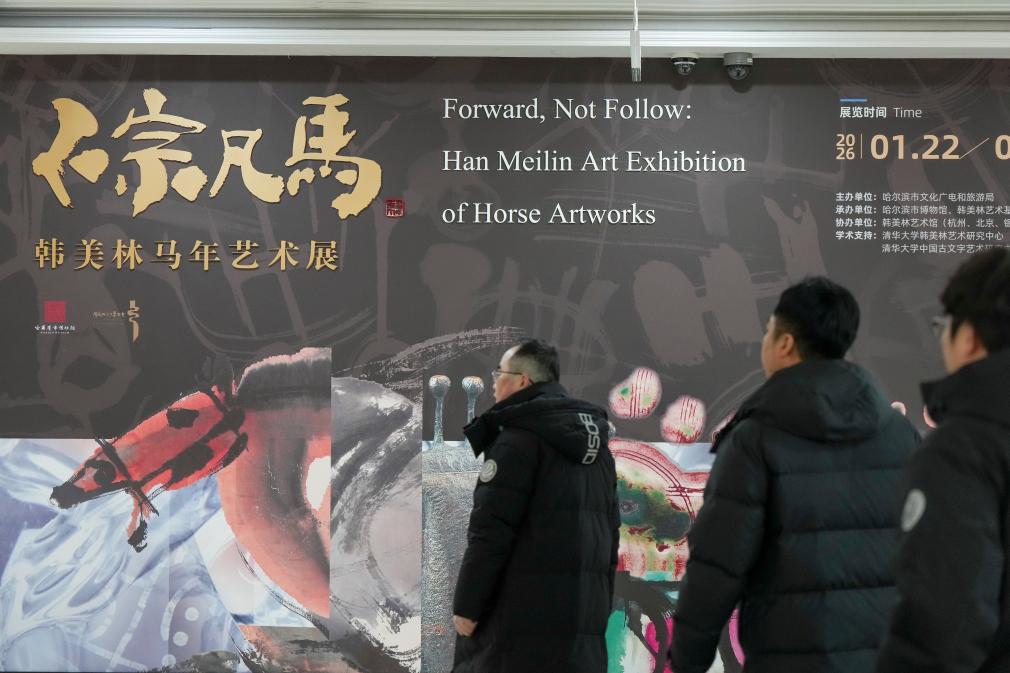 【新華社ハルビン1月25日】中国黒竜江省のハルビン市博物館で22日、中国の著名芸術家、韓美林(かん・びりん)氏の作品展「非凡なる馬-韓美林馬年芸術展」が開幕した。馬をテーマにした作品を中心に、水墨画、ブロンズ彫刻、陶磁器などを展示。形の再現から内面の表現まで、創作の軌跡を紹介している。