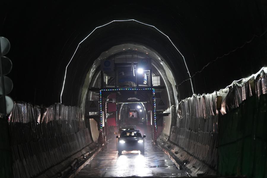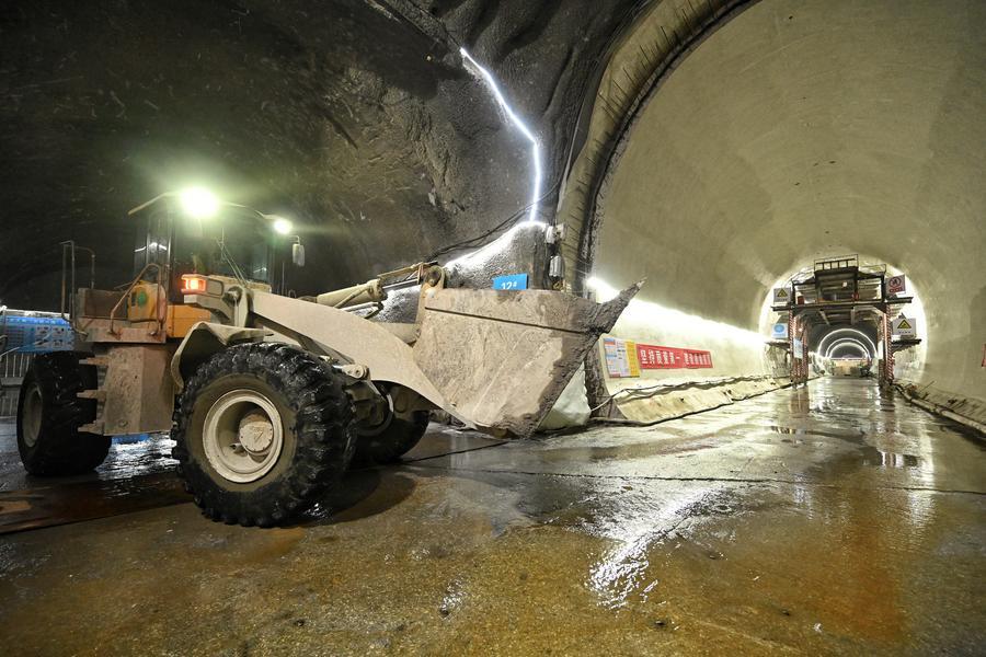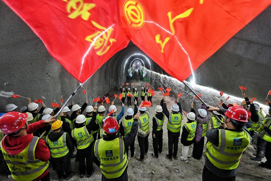 28日、貫通した重慶軌道交通の銅鑼山トンネルの工事現場。(重慶=新華社配信)