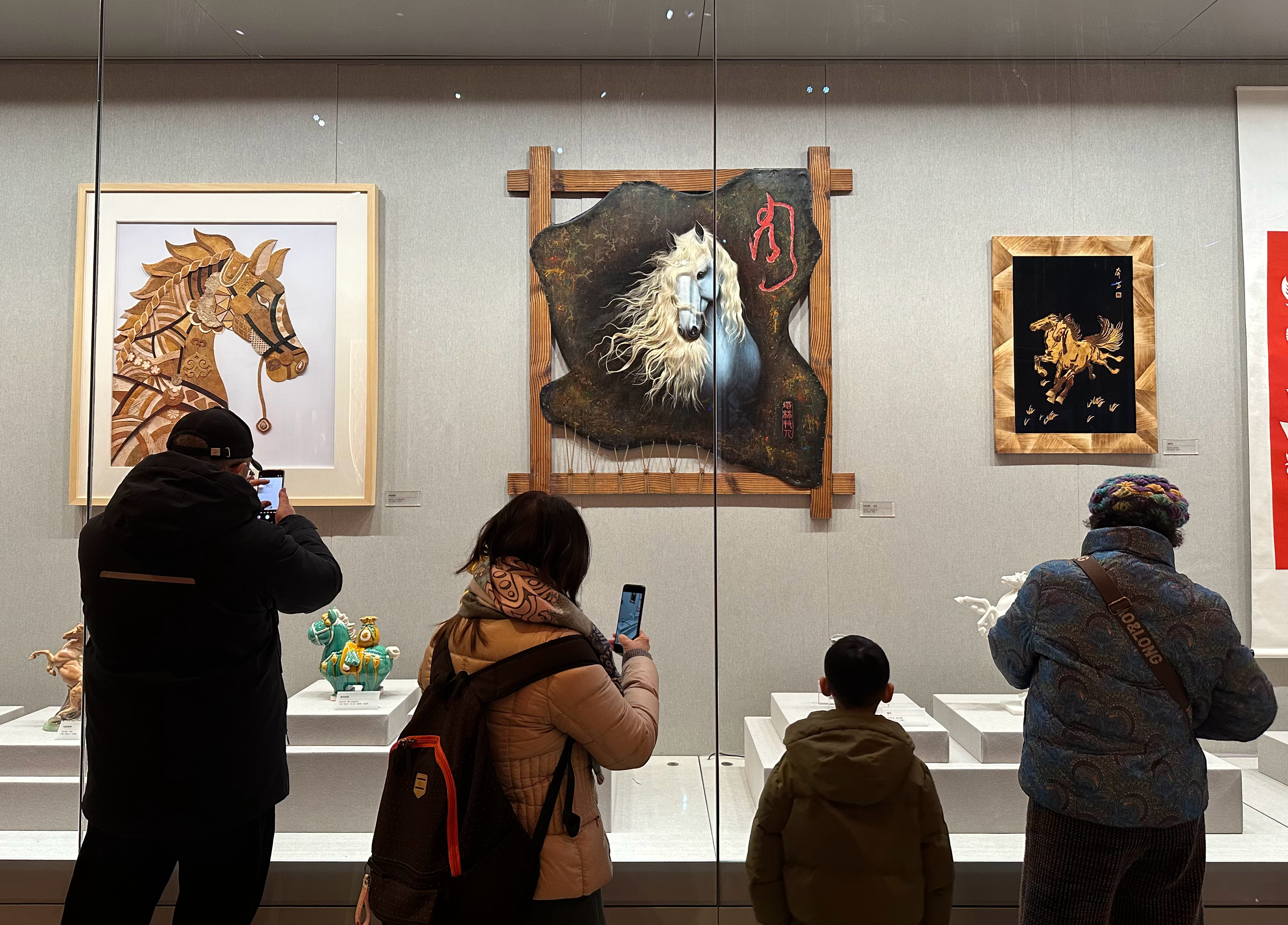 30日、「年越し-丙午春節シリーズテーマ展」の会場で写真に納まる来場者。(北京=新華社記者/陳辰)