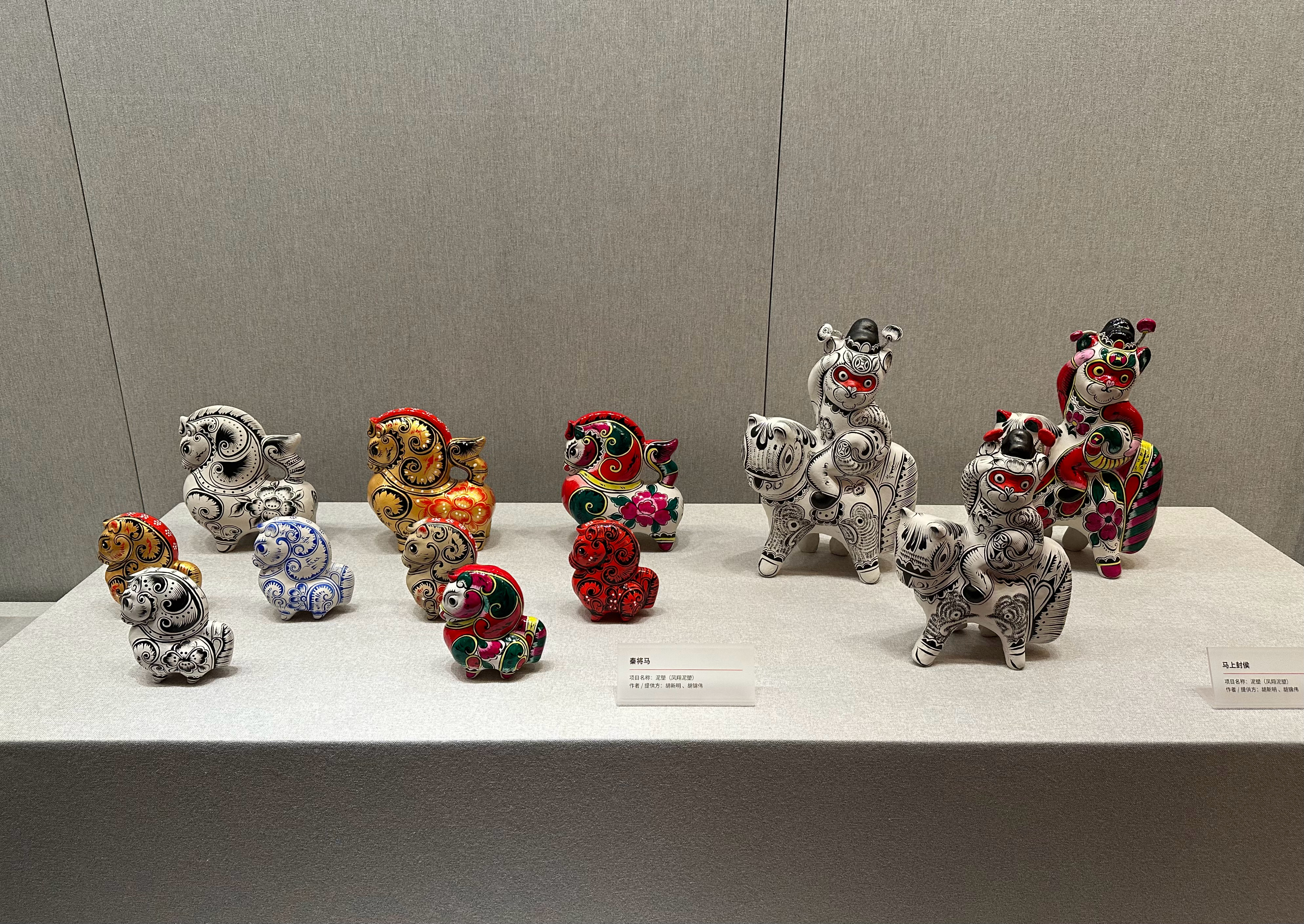 30日、「年越し-丙午春節シリーズテーマ展」で展示された泥塑(でいそ=泥人形)作品。(北京=新華社記者/陳辰)