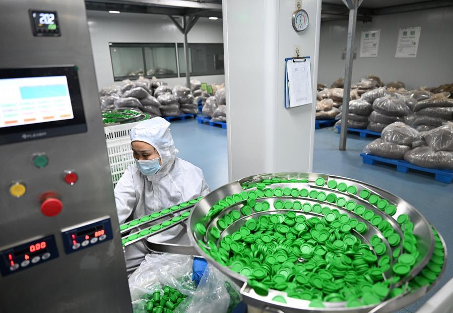 1月27日、中国(濮陽)・エチオピアコーヒー産業モデルパークの凍結乾燥工場で働く従業員。(鄭州=新華社記者/郝源)