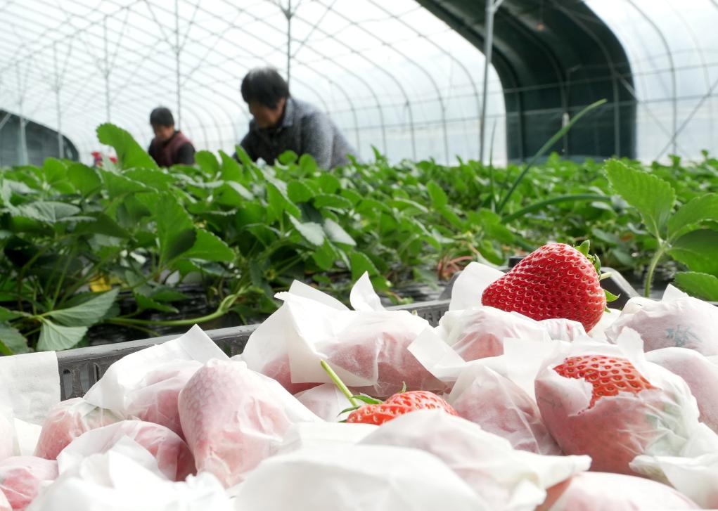 【新華社秦皇島2月4日】中国河北省秦皇島市盧竜県はここ数年、農家と合作社(協同組合)、生産地の連携モデルを積極的に推進している。標準化された管理の下、農業ハウスでイチゴ、ブルーベリー、キュウリ、トマトなど高品質な果物や野菜を栽培し、生産者の収入増と農村振興につなげている。