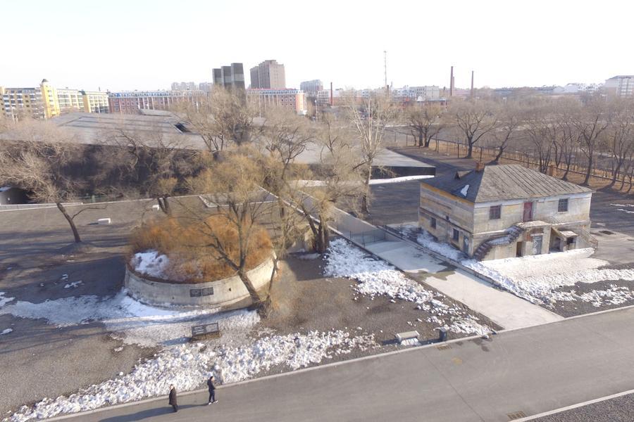 731部隊の毒ガス貯蔵室と毒ガス実験室。(ドローンから、ハルビン=新華社配信)