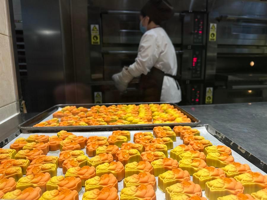 8日、北京稲香村「零号店」で菓子を買う人々。同店は2021年、北京・東四北大街の創業地にオープン。伝統菓子と流行文化を結び付け、グルメや文化、都市の歴史などを融合させた特色を打ち出している。(北京=新華社記者/邱虹)