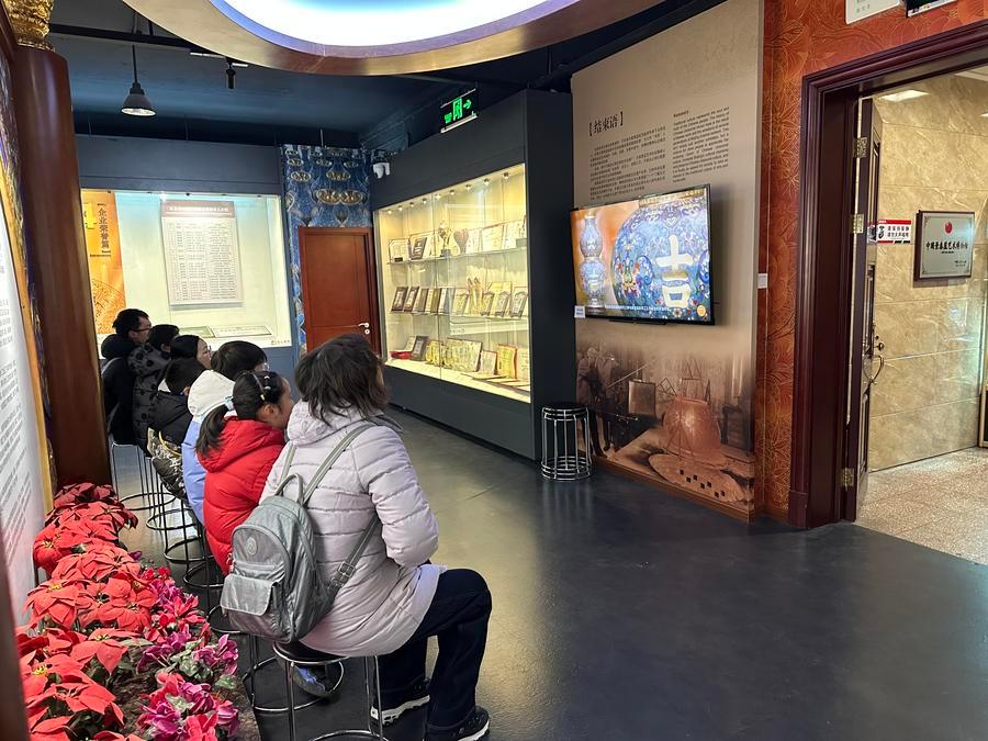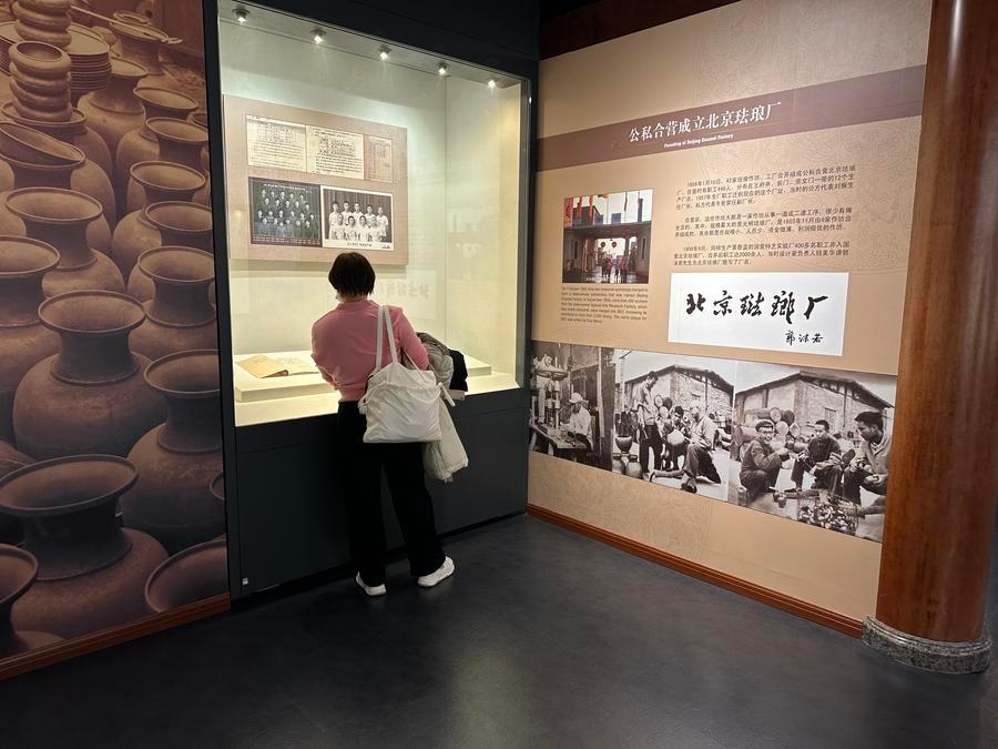 9日、北京市琺瑯廠の「景泰藍芸術博物館」を見学する来館者。(北京=新華社記者/邱虹)