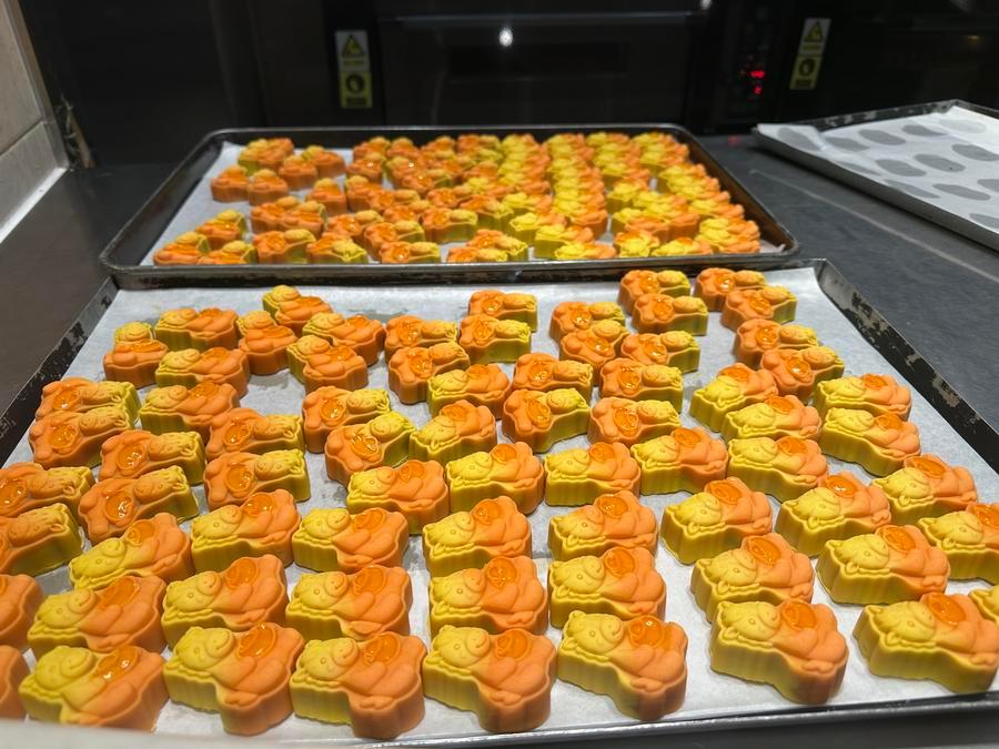 8日、北京稲香村「零号店」で、出来上がったばかりの午(うま)年の新作菓子。(北京=新華社記者/邱虹)