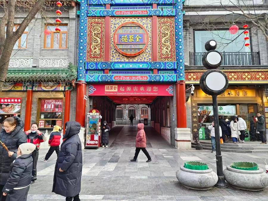 6日、北京市の前門大街にある全聚徳の創業店。(北京=新華社配信/江婧)