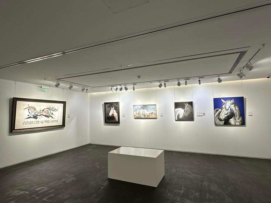 8日、「文房四宝」や書画骨董の老舗として知られる栄宝斎の店内に飾られた、馬を題材にした作品。(北京=新華社記者/邱虹)