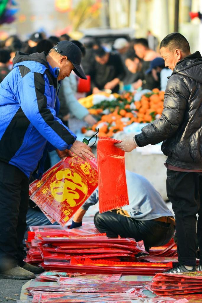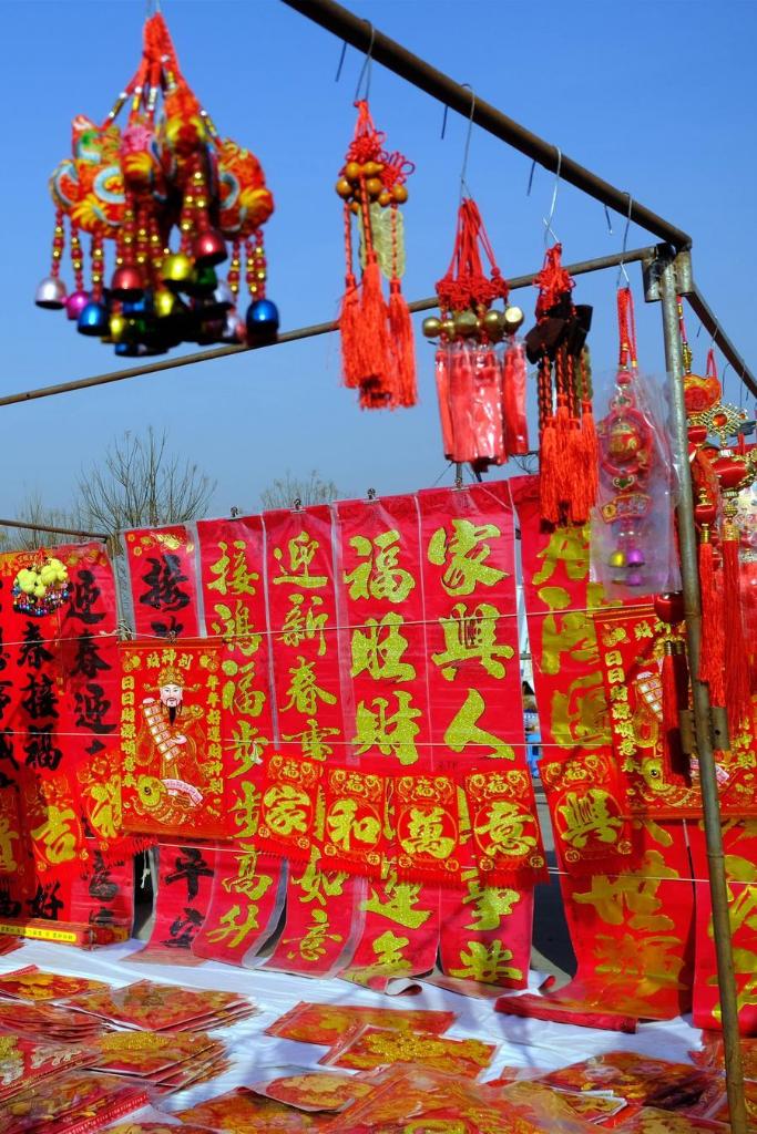12日、太子務大集に並ぶ春節用品。(天津=新華社配信/于長華)