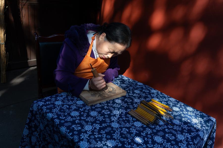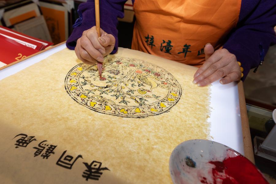 【新華社綿陽2月17日】中国四川省綿陽市梓潼(しとう)県の大廟山にある羅智婉梓潼木版年画工房で12日、版画などの体験イベントが行われ、多くの観光客が参加した。工房では春節(旧正月)連休期間中、特色ある作品や文化クリエーティブ商品を販売するほか、彫刻や拓本、年画など、親子で伝統文化の魅力を味わえるイベントを開催する。