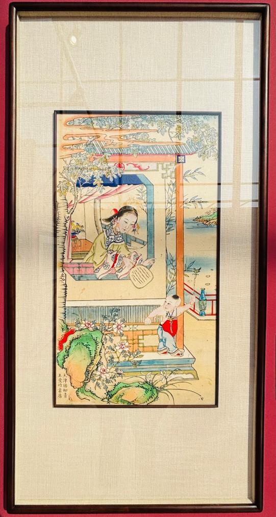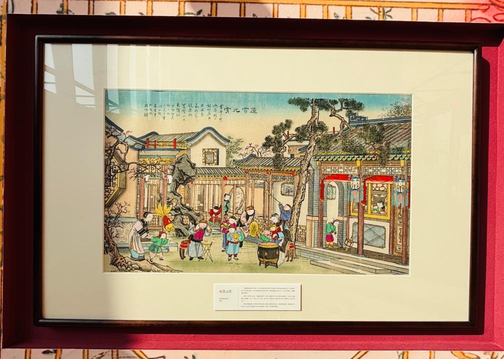 13日、天津博物館「「天津芸術の粋、色彩と造形に宿る魂-楊柳青年画・泥人張彩塑芸術展」に展示された楊柳青木版年画(正月画)。(天津=新華社記者/周潤健)