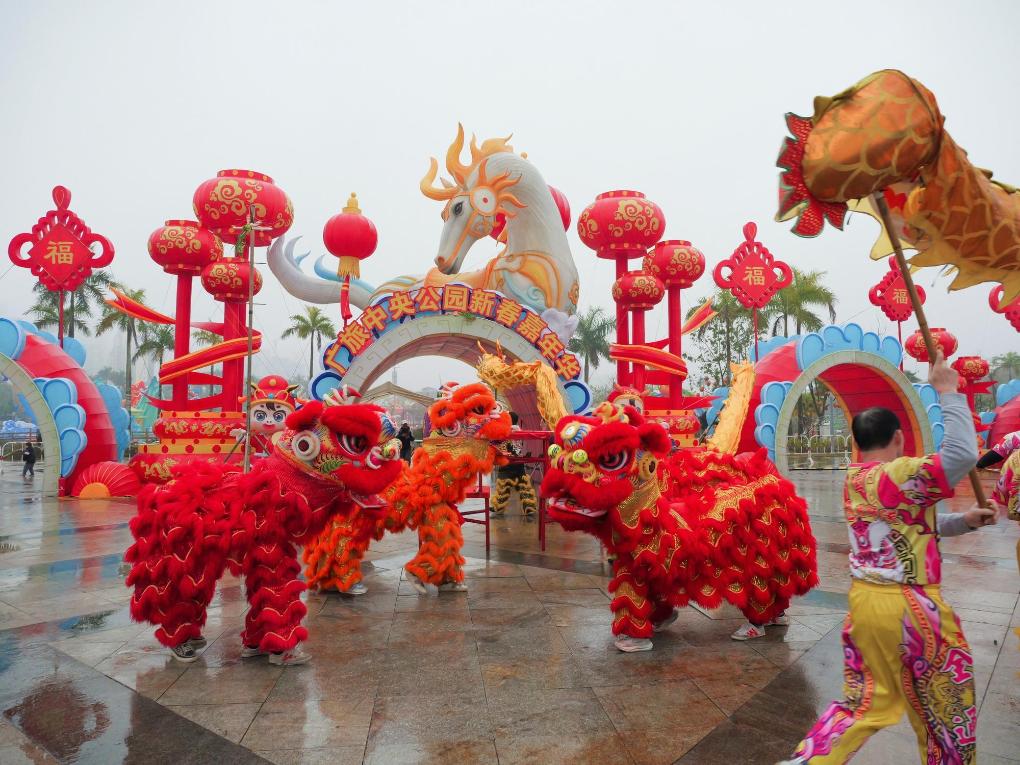 南寧市文化観光芸術園で行われた新春カーニバルのイベント。(南寧=新華社配信)