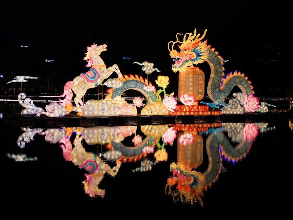 新春カーニバルで展示されたランタン作品。「竜馬精神」(活力に満ちて力強く前進しようとする気概)を表現している。(南寧=新華社配信)