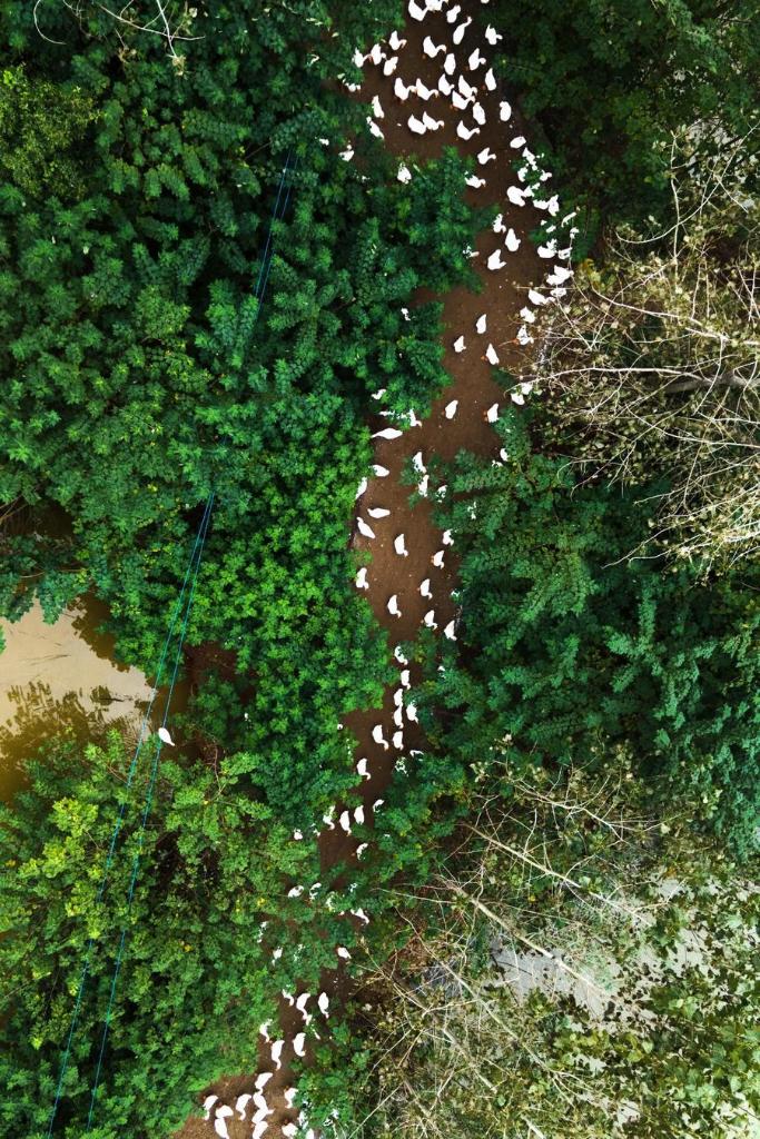 渓流で群れをつくる皖西白鵝。(六安=新華社配信)