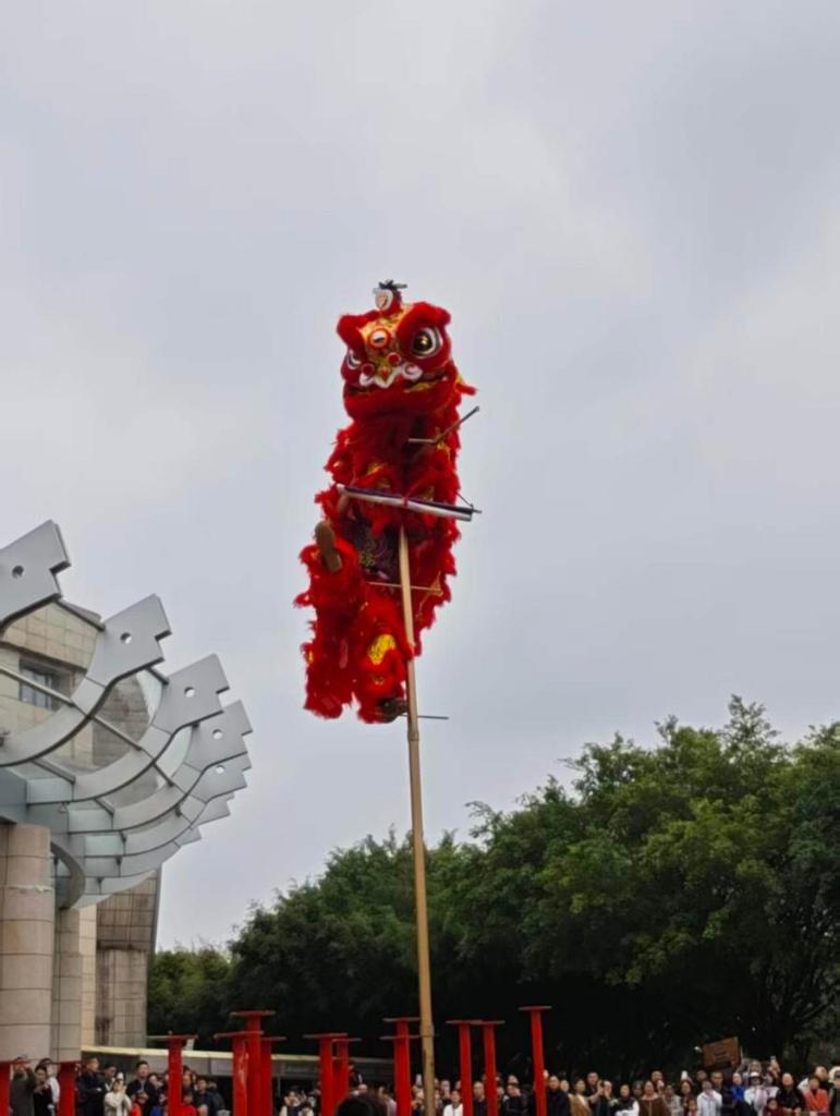 18日、広西民族博物館前の広場で披露された獅子舞。(南寧=新華社記者/黄慶剛)