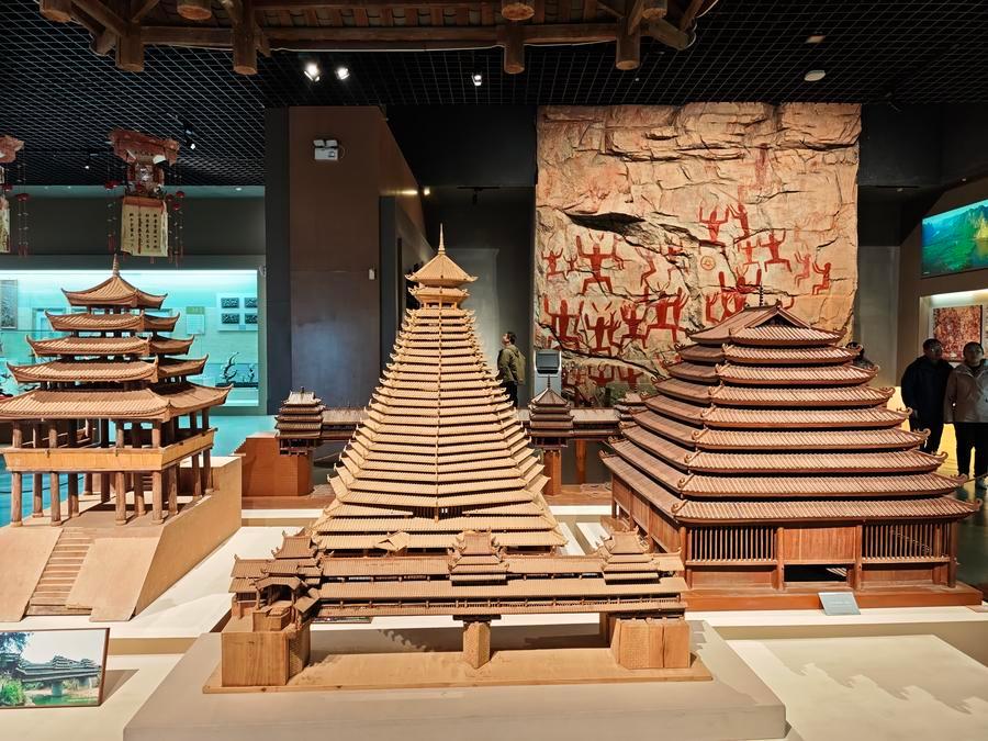18日、広西民族博物館に展示されている伝統民族建築の模型。(南寧=新華社記者/黄慶剛)