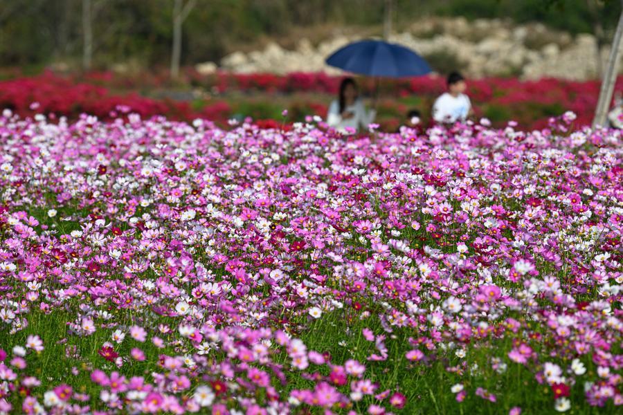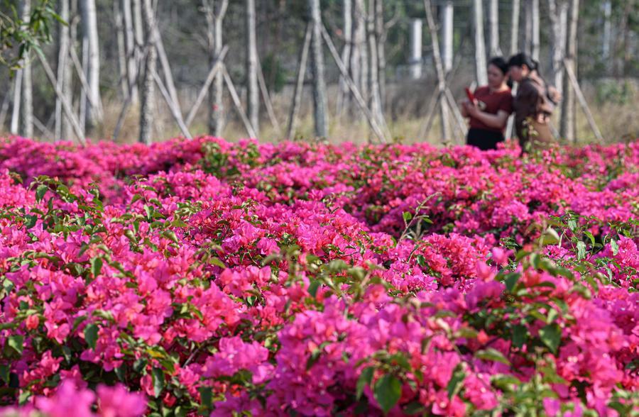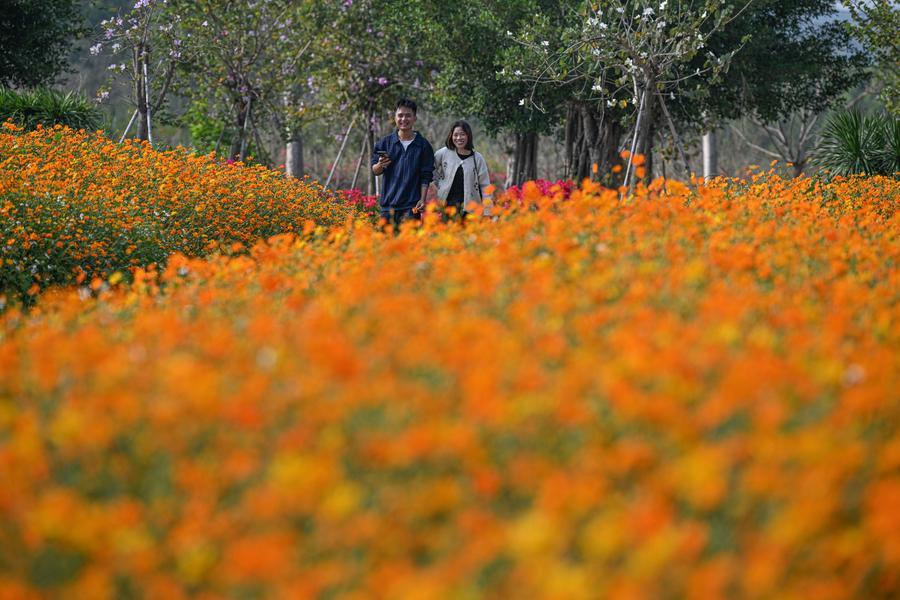 【新華社昌江2月22日】中国海南省昌江リー族自治県の聚源花卉(かき)博覧園では、コスモスやブーゲンビリアなどが咲き誇り、多くの来園者が散策や撮影を楽しんでいる。