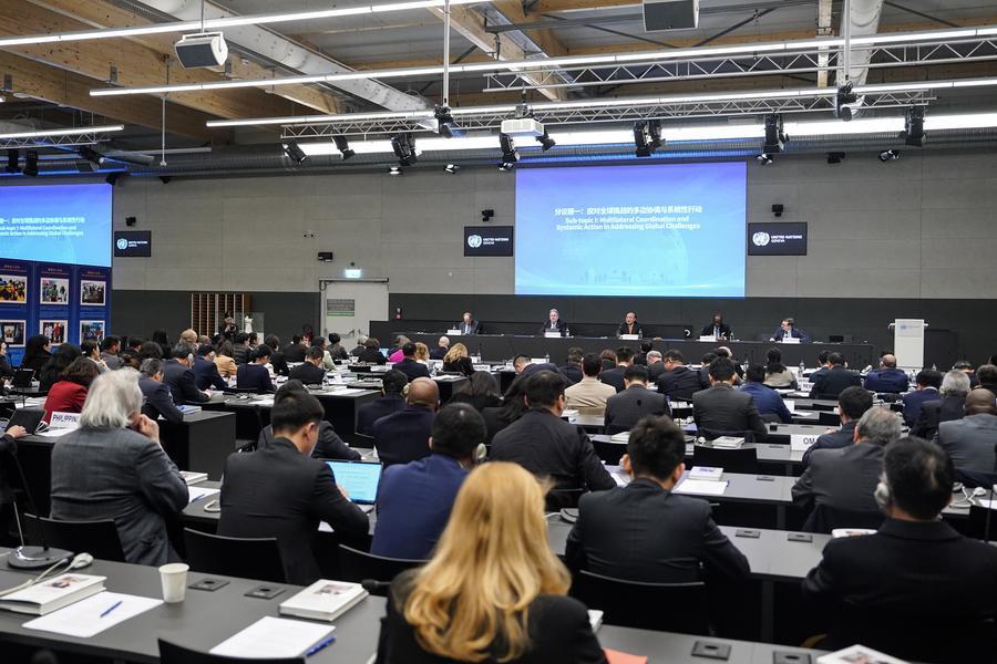 24日、ジュネーブのパレ・デ・ナシオンで行われたグローバルガバナンスに関するセミナーと「習近平指導下の中国統治」第1巻英語版の発表会。(ジュネーブ=新華社記者/彭子洋)