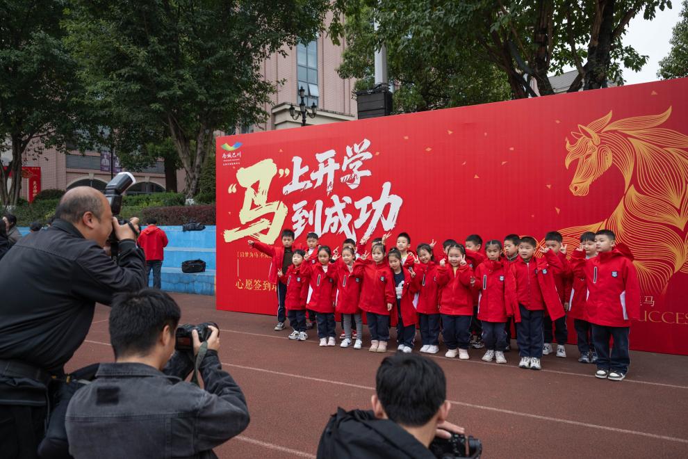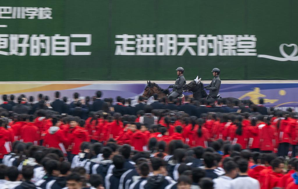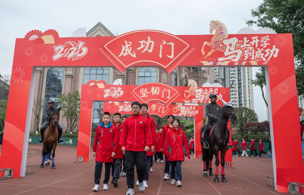 【新華社重慶3月7日】中国重慶市では5日、小中学校が春学期の初の登校日を迎えた。市内の南城巴川中学では、今年の干支(えと)である馬の要素を取り入れたユニークな始業式が行われた。