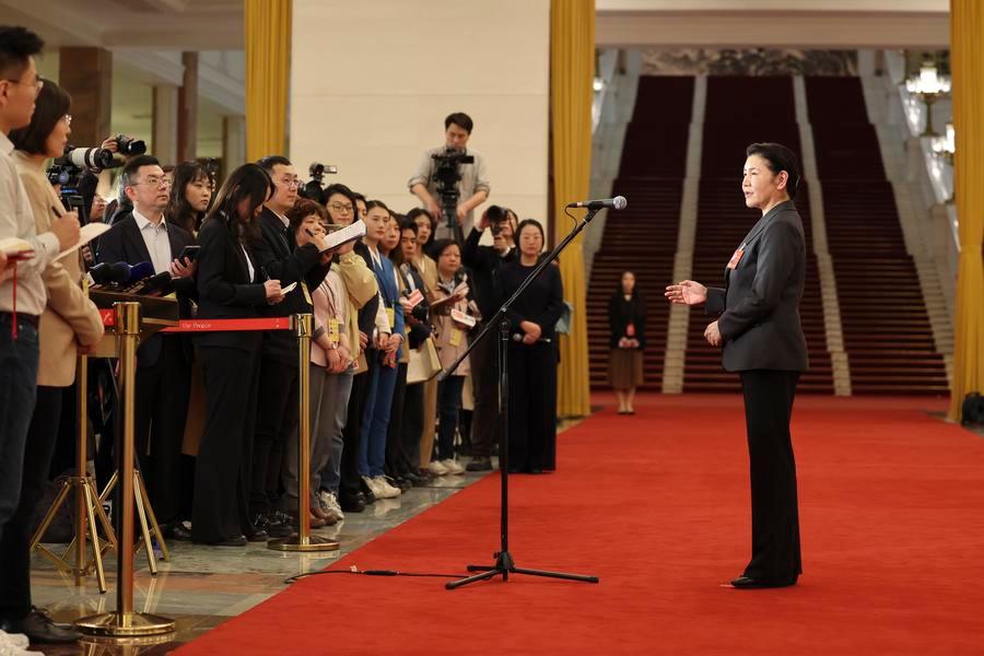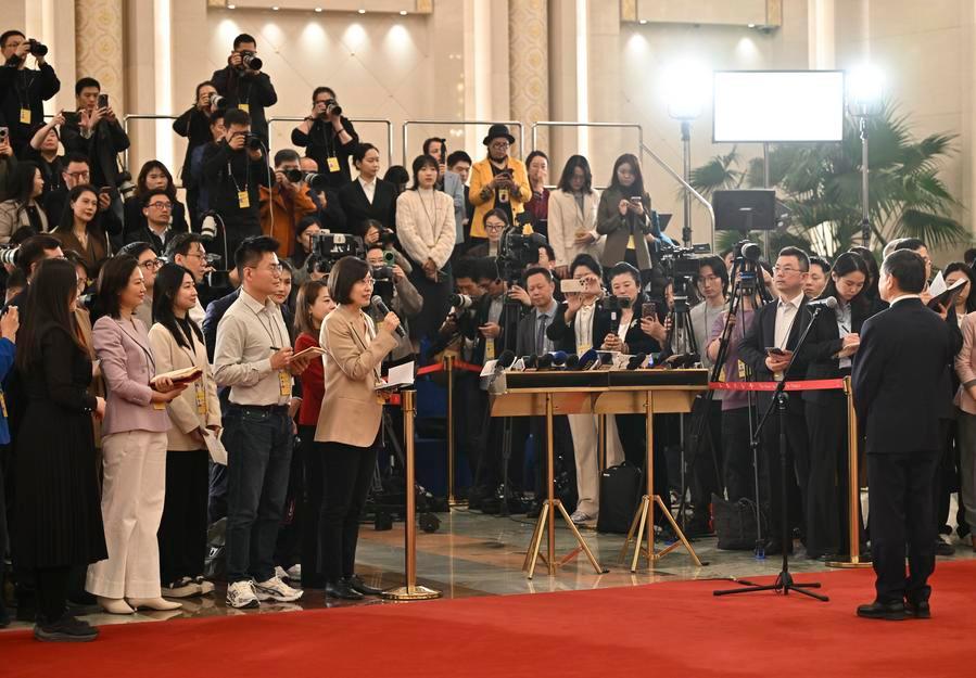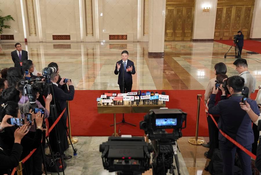 【新華社北京3月12日】中国の第14期全国人民代表大会(全人代)第4回会議は12日、北京の人民大会堂で3回目の「部長通路」(閣僚らを対象とした特設スペース取材)を行った。