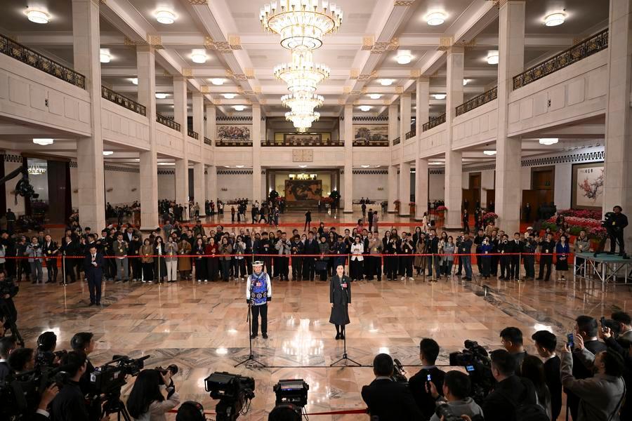 【新華社北京3月12日】中国の第14期全国人民代表大会(全人代)第4回会議は12日、北京の人民大会堂で3回目の「代表通路」(全人代代表を対象とした特設スペース取材)を行った。