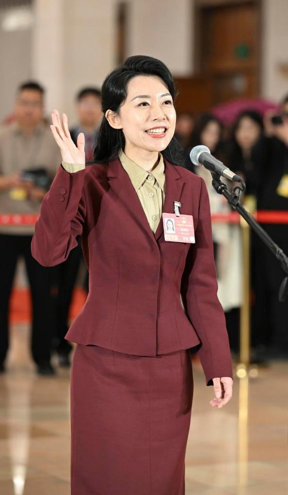 12日、取材を受ける全人代代表の呂妍(りょ・けん)氏。(北京=新華社記者/程婷婷)
