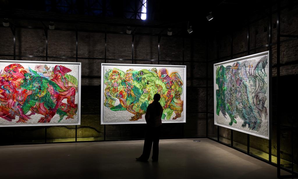 【新華社ローマ4月7日】イタリアのローマ国立博物館・ディオクレティアヌス浴場跡で、中国の現代アート作家、鄔建安(お・けんあん)さんの作品を集めた特別展「鄔建安・変形記」が開かれている。会場に展示された切り紙細工やコラージュ、影絵などの作品は、中国の伝統的な素材と技法をふんだんに用い、古代ローマ神話と東洋哲学から得た着想を昇華させ、東洋と西洋、古代と現代が交差する芸術的対話を来場者に提示している。