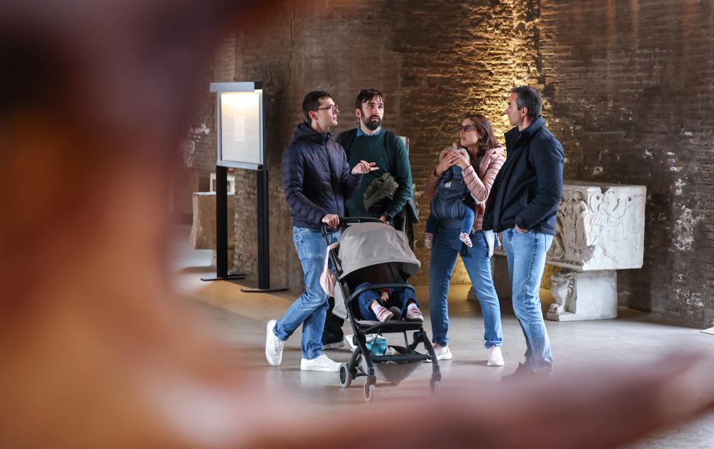 1日、ローマ国立博物館・ディオクレティアヌス浴場で、鄔建安さんの作品を鑑賞する来場者。(ローマ=新華社記者/王楷焱)
